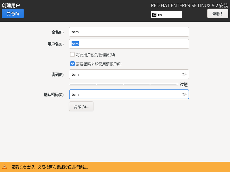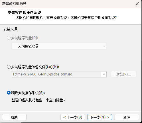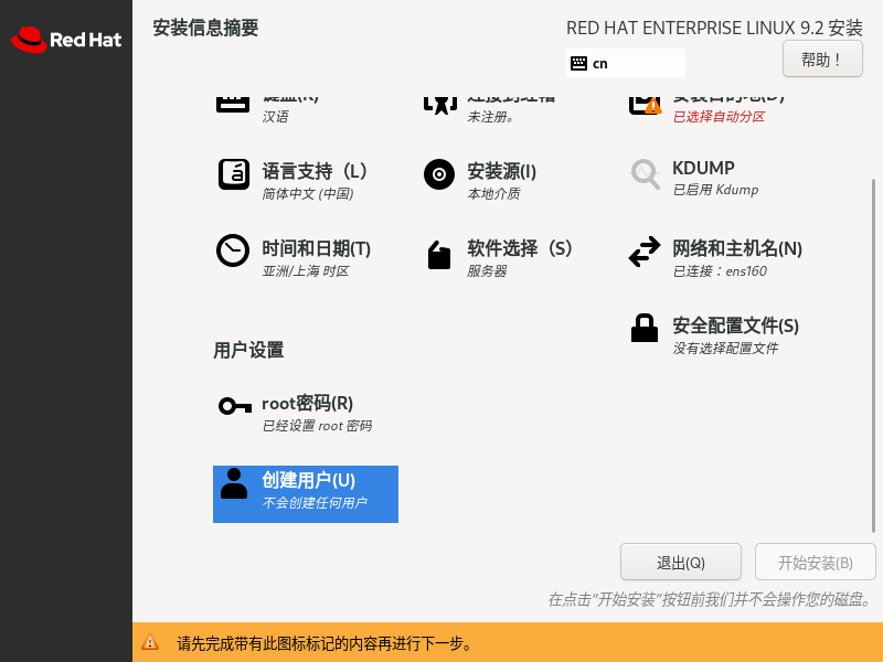 使用VM软件安装Linux服务器系统 作者: aixiaxue 时间: 2026-03-20 分类: 中级工阶段学习 阅读 85次 #获取信息 ##任务情景: 呼伦贝尔技师学院现在需要安装一台Linux服务器系统,为了节省资源暂时用VM软件进行安装,在VM软件中为Linux服务器分配合适的资源,保证计算机和服务器均能正常运行。 ##任务要求: 在Linux系统中设置英文;时区设置为中国;使用不带图形化的服务器;主机名为hlbrjsxy;设置系统root用户的密码为root;设置普通用户tom,密码为tom;使用命令进行服务器系统的关机、重启等操作。 #制定计划 ##学习步骤1:VM软件设置 ###引导问题1:此次实验的Linux安装包名称为rhcl9-xxx.ios,请分析此次安装的Linux是什么版本? RHCl是Red Hat Enterprise Linux的缩写,是红帽系统,第9代版本 ###引导问题2:使用VM软件的好处有哪些 学习过程中没办法保证每个学生都有一台真机服务器进行实操 而且使用VM可以更方便的添加删除硬件 VM软件还能使用快照功能,快照是更方便的保存服务器状态,更好的方便实验 ###引导问题3:在VM软件管理界面,使用哪个按钮,开始创建虚拟机  ###引导问题4:在欢迎使用新建虚拟机向导中,选择哪个按钮?  ###引导问题5:在硬件兼容性界面,选择哪个选项?  ###引导问题6:在安装客户机操作系统中,选择哪个选项? 选择【稍后安装操作系统】 切记此处选择,如果选错,后续的安装步骤将会出错 此处选择也是更好的还原真机实施过程  ###引导问题7:在选择客户机操作系统中,系统和版本分别应该选择什么?注意回答此问题要根据【引导问题1】谨慎回答 选择【Linux】【Red Hat 9 64位】 此处不要选错,如果选错可能后续实施过程中兼容性出现问题  ###引导问题8:在命名虚拟机中,位置选项,一定要安装在D或者E盘下,并单独创建文件夹,请写出你的位置内容 虚拟机名称不用修改 修改位置! 不要将虚拟机存放在C盘,很占空间的  ###引导问题9:在处理器配置中,将处理器数量设置为4  ###引导问题10:在此虚拟机的内存中,将内存设置为4  ###引导问题11:在网络类型中,选择哪个选项?  ###引导问题12:在选择I/O控制器类型中中,选择哪个选项?  ###引导问题13:在磁盘类型中,选择哪个选项? 为了和真机操作相同,此处选择【SATA】  ###引导问题14:在选择磁盘中,选择哪个选项?  ###引导问题15:在指定磁盘容量中,最大磁盘大小设置为多少?选择哪个选项? 磁盘大小默认【20G】  ###引导问题16:在指定磁盘文件中,默认设置即可  ###引导问题17:在自定义硬件中,在左侧选中CD/DVD选项,在右侧使用ISO映像文件中找到在最后盘符中的rhcl9-xxx.iso文件  ###引导问题18:启动虚拟机,开始安装Linux系统 ##学习步骤2:Linux服务器安装设置 ###引导问题1:运行VM软件,开始进行Linux系统安装,选择系统的安装语言,选择英文 根据任务要求,选择【英文】  ###引导问题2:在Time&Date,根据任务要求,选择什么时区?如何选中时区   ###引导问题3:在软件模式中,提供了6种基本环境,请写出他们的中英文对照;根据任务要求,选择那个选项? Server with GUI(带图形用户界面的服务器) Server(服务器) Minimal Install(最小化安装) Workstation(工作站) Custom Operating System(自定义操作系统) Virtualization Host(虚拟化主机)  根据任务要求,选择【不带图形界面】,选择【Server】 ###引导问题4:在Installation Destination中,点击Done,  ###引导问题5:在KDUMP中,该服务是什么功能? KDUMP 服务用于收集系统内核崩溃数据,但是考虑到短时间内我们并不打算调试系统内核参数,所以这里建议取消选中 Enable kdump 复选框  ###引导问题6:在NETWORK&HOST NAME界面,根据任务要求,主机名写什么? 点击【Network&Hostname】根据题目要求设置主机名【hlbrjsxy】  ###引导问题7:在Root Password中,根据任务要求,root用户的密码设置是什么? 点击【Root Password】,设置root账户密码为 root  ###引导问题8:在User Creation中,根据任务要求,创建的普通用户名和密码是什么? 根据题目要求输入tom用户和密码   ###引导问题9:点击开始安装,进行Linux服务器安装,安装时间较长,请耐心等待  ###引导问题10:如果使用【图形界面】安装完成后登陆系统,使用root账户登陆,但是提示中没有root账户,应该点击那里? 点击【Not List】,登录root账户,  ###引导问题11:根据System V Init运行级别,关机、多用户文本界面、多用户图形界面、重启对应的Init值分别是多少?  标签: none