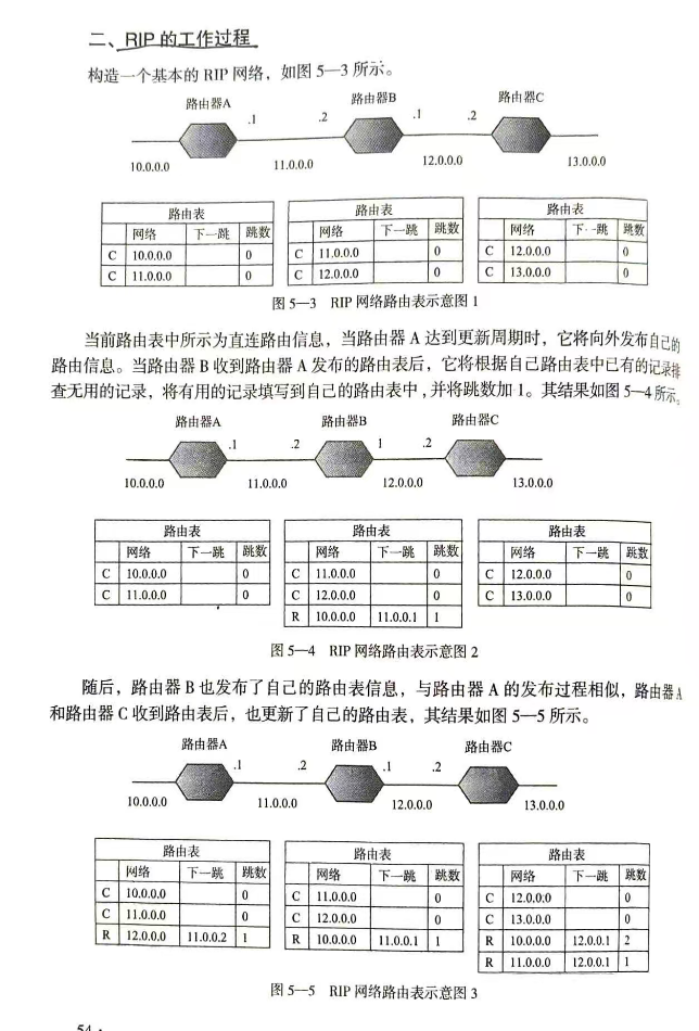 OSPF动态路由协议 作者: aixiaxue 时间: 2026-03-23 分类: 中型网络安装与调试学习任务 阅读 40次 #获取信息 ##任务情景: 现有静态路由维护困难、收敛慢,需要在网络核心与路由器设备上统一部署 OSPF,将全部路由划入区域 0,实现快速扩展与故障自愈。 ##任务要求: 在全部设备启用OSPF进程1、area 0,每台设备设置唯一Router-ID,配置完成后逐台查看OSPF路由表,验证所有楼宇网段均已通过OSPF学习。 ##网络拓扑图 本次实验和之前实验相同,请参考下图  #制定计划 ##学习步骤1:学习动态路由协议 ###引导问题1:什么是静态路由 静态路由是由网络管理员手工配置的路由信息 静态路由在默认情况下是私有的,不会传递给网络中其他的路由器 静态路由特点如下: 1、静态路由允许对网络中的路由行为,进行精确的定向传输和控制 2、静态路由表信息不在网络中广播,减少网络流量 3、静态路由是单项的路由,配置简单 配置命令为 ```bash ip route 192.168.0.1 255.255.255.0 100.100.100.1 ``` 其中192.168.0.1 255.255.255.0为源地址 100.100.100.1为下一跳地址 ###引导问题2:什么是动态路由 动态路由可以让路由器自动学习到其他路由器的网络,并且网络拓扑发生改变后自动更新路由表 ###引导问题3:常见的动态路由协议有哪些 比如RIP路由协议、OSPF路由协议、BGP路由协议、ISIS路由协议 ###引导问题4:请写出上述路由协议中哪些是距离矢量路由协议 距离矢量路由协议,是因为路由是以矢量(距离、方向)的方式被通告出去 常见的距离矢量路由协议由RIP ###引导问题5:请写出上述路由协议中哪些是链路状态路由协议 链路状态路由协议,又叫最短路径优先协议或分布式数据库路由协议 网络中的路由器并不向邻居路由器传递路由项,而是通告给邻居路由器的一些链路状态,最后全网络中形成总的链路状态数据库,一句数据库生成各自的路由表 ###引导问题6:请写出上述路由协议中哪些适用于内部网络 RIP OSPF ###引导问题7:请写出上述路由协议中哪些适用于外部网络 OSPF BGP ##学习步骤2:学习RIP动态路由协议 ###引导问题1:什么是RIP动态路由协议 RIP是一种比较简单的动态路由协议,最大条数为15跳,超过15跳的网络则认为目标网络不可达 是一种经典的距离矢量路由协议 ###引导问题2:什么是度量值 度量值是一个值,路由算法使用它来度量到目的地的路径(开销) ###引导问题3:RIP路由协议的度量值用什么衡量 我的理解:度量值是用来表示路由的好坏,RIP协议的度量值是跳,每经过一个路由器则跳数+1 在RIP协议中跳数越小,代表目的地越近,路由的优先级越高 ###引导问题4:RIP路由协议的度量值最大值是多少? 15 ###引导问题5:如何理解《网络设备互联》54页的RIP工作过程   ###引导问题6:如何配置RIP路由协议 ```bash Router (config)# router rip // 启用 RIP Router (config-router)# network x.x.x.x //宣告网段 ``` ###引导问题7:请写出《网络设备互联》55页【任务实施】的RIP配置内容  ##学习步骤3:学习RIP V2动态路由协议 ###引导问题1:请写出RIP v2动态路由协议的配置 ```bash Router (config)# router rip // 启用 RIP Router (config-router)# version 2 //qidong RIPV2 Router (config-router)# network x.x.x.x //宣告网段 ``` ###引导问题2:什么是路由环 路由环是路由器在学习RIP路由过程中的一种路由故障现象 ###引导问题3:路由环会造成什么 当网络中某条路由失效是,在这条路由失效的通告对外广播之前,RIP路由的定时更新机制,有可能导致路由环路   ###引导问题4:为了防止路由环,有几种方法 1.水平分割 2.触发更新 3.毒性逆转 4.抑制计时器 ###引导问题5:如何理解什么是水平分割 水平分割:从路由器A学习到的信息,不再发布给路由器A 开启水平分割后,设备会记录路由信息的来源,从某接口学习到的信息不再重复通过该接口再次通告 ###引导问题6:如何理解什么是触发更新 触发更新:当路由器自身直连的路由发生变化,立即广播给相邻的路由器,而不是等待下一个更新周期 ###引导问题7:如何理解什么是毒性逆转 毒性逆转:当路由器的某条路由信息失效后,路由器会立即将该路由信息毒化(RIP协议度量值设置为16),并对外广播该条毒化路由,其他路由器在收到该路由信息后,所保存的路由信息将会立即失效 ###引导问题8:如何理解什么是抑制计时器 抑制计时器:阻止定期更新的通告 ###引导问题9:show ip rip 命令有何用处 显示路由表 ###引导问题10:show ip rip database 命令有何用处 查看本路由器rip协议的数据库 ###引导问题11:show ip interface brief 命令有何用处 查看接口状态 ###引导问题12:debug命令是什么作用 debug:调试排错命令 ###引导问题13:debug命令的特点 debug命令是让路由器执行以下动作: 1、监视内部过程 2、单某进程发生一些事件后,产生日志信息 3、持续产生日志信息,直到用no debug命令关闭 ###引导问题14:如何debug排错RIP路由协议 ```bash debug ip rip ``` ###引导问题15:如何关闭debug排错RIP路由协议 ```bash no debug ip rip ``` ##学习步骤4:学习OSPF动态路由协议 ###引导问题1:OSPF中文是什么意思 OSPF:开放式最短路径优先协议,属于链路状态路由协议 ###引导问题2:OSPF中重要概念是什么?每个区域维护着共同的什么? 区域:每个区域中所有的路由器维护着一张相同的链路状态数据库(LSDB) 区域包括:骨干区域(编号为0),非骨干区域(其他编号) ###引导问题3:OSPF通过什么得到路由表 OSPF李勇说维护的链路状态数据库(LSDB),每台路由器自身通过